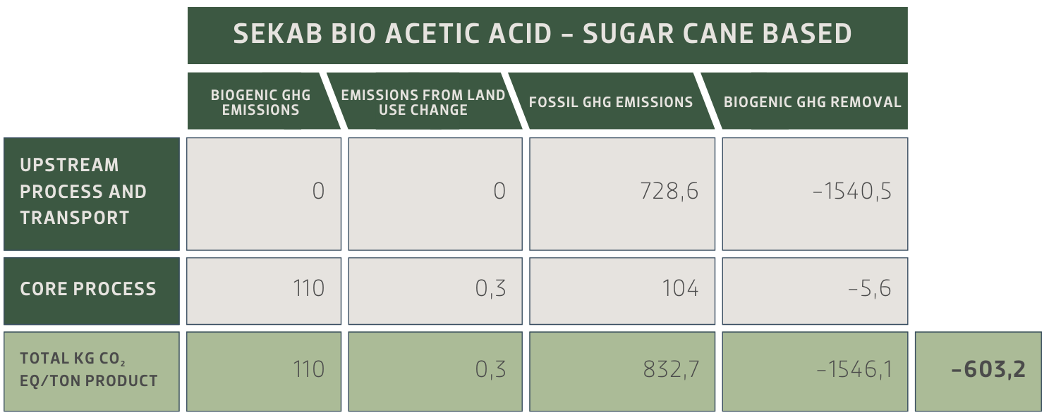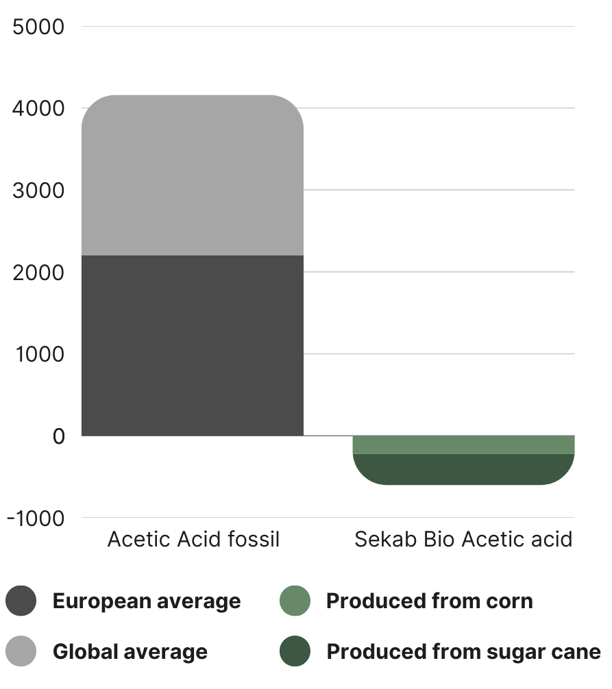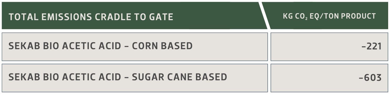 Sekab products’ GHG emissions value cradle to gate, including biogenic CO2 uptake reveals a negative carbon footprint. This is thanks to the biogenic CO2 uptake inherent in bio-based products, a clear advantage over fossil-based alternatives, which typically report positive emissions.