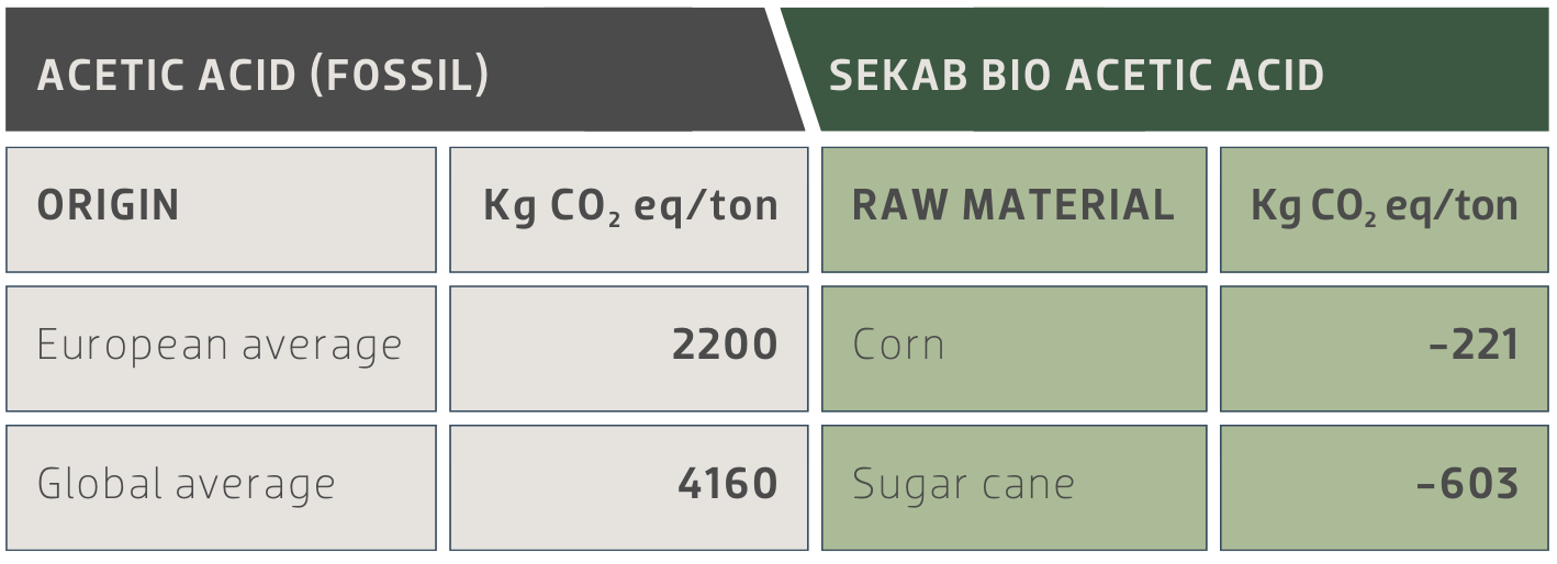 90% of the carbon footprint comes from the raw material. Our raw material is bio ethanol that comes from different feedstocks, mainly corn or sugar cane. The emissions can differ for the same end product due to the different raw materials and their individual ways of growing and capturing CO2. The emission also depends on where the raw material is grown.