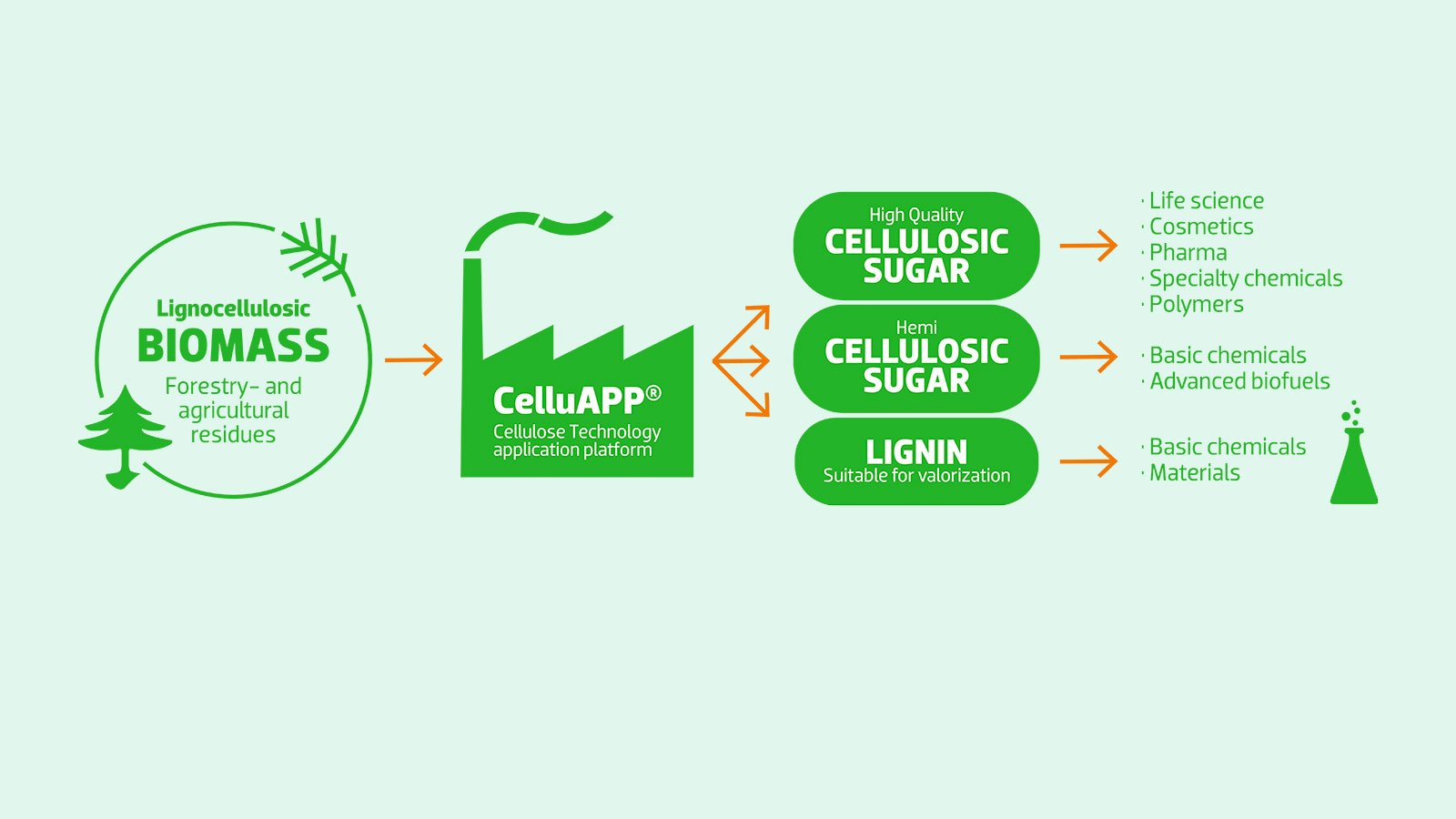 I Biroefinery Demoplant Örnsköldsvik har Sekab sedan invigningen 2004 arbetat med utvecklingen av CelluAPP – en teknikplattform för förädling av cellulosabaserad biomassa.