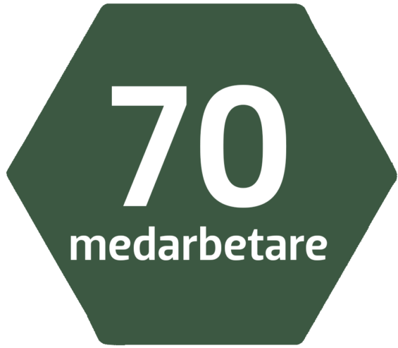 Just nu är vi ca 70 medarbetare men vårt mål är att växa och bli fler. Genomsnittlig anställningstid är 15,4 år hos oss